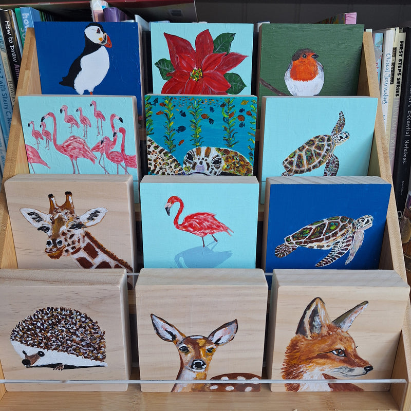 I start every January with a daily painting challenge. This sets me up for the year and gives me new images to use for future products. In November I painted a selection of mini paintings on 4x4 wooden blocks which were very popular at the Christmas Markets and so I have decided to create some more of them, so watch this space.