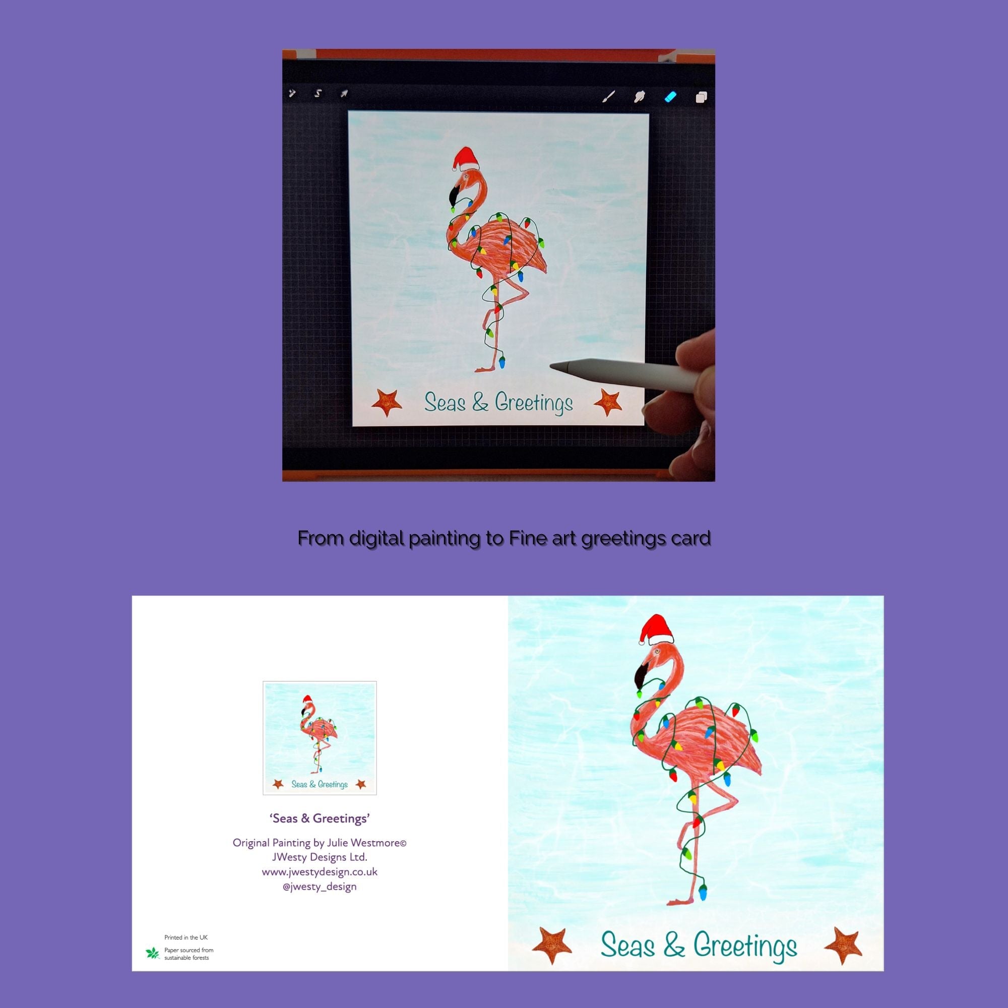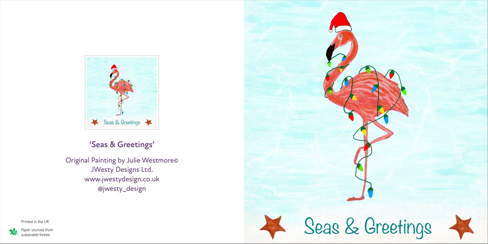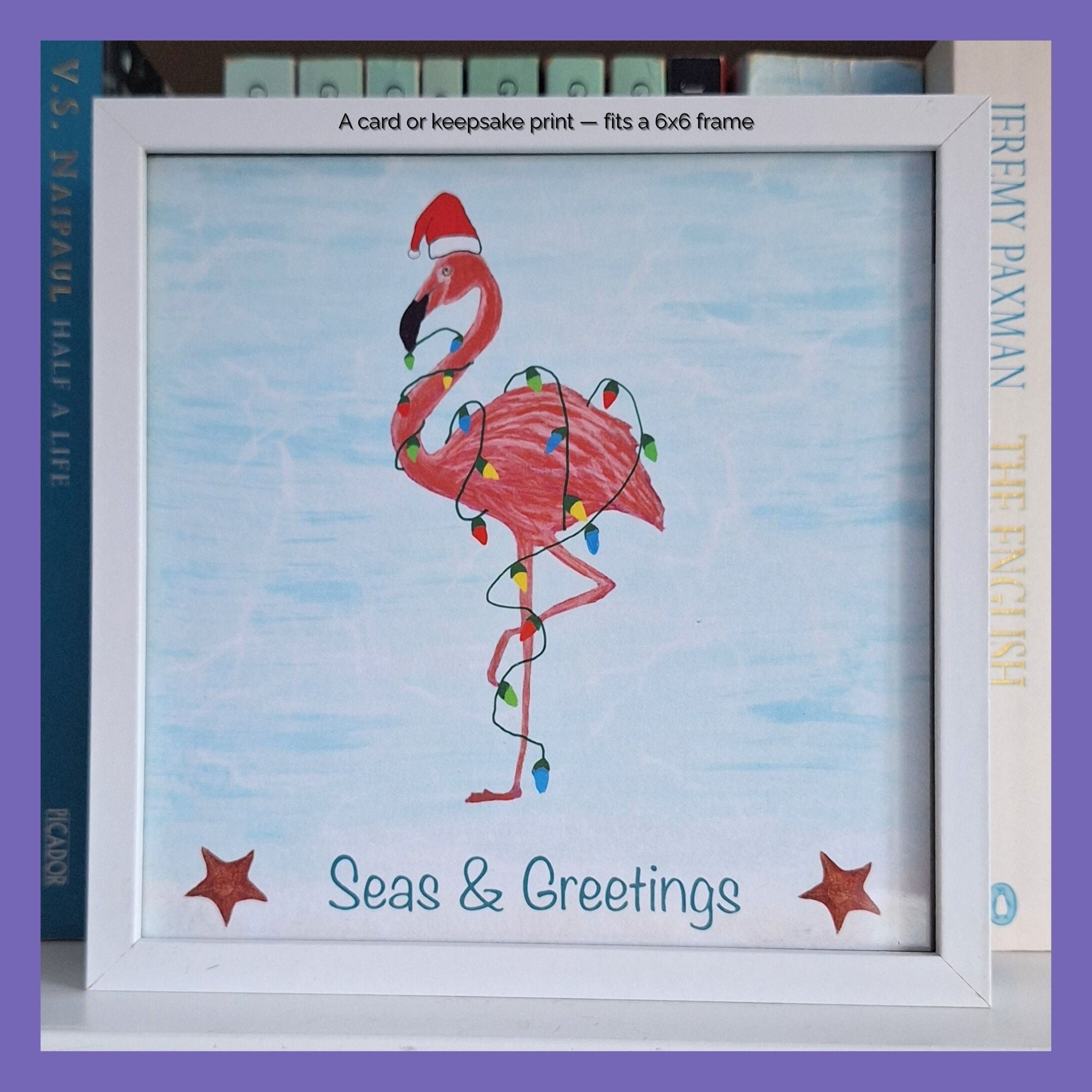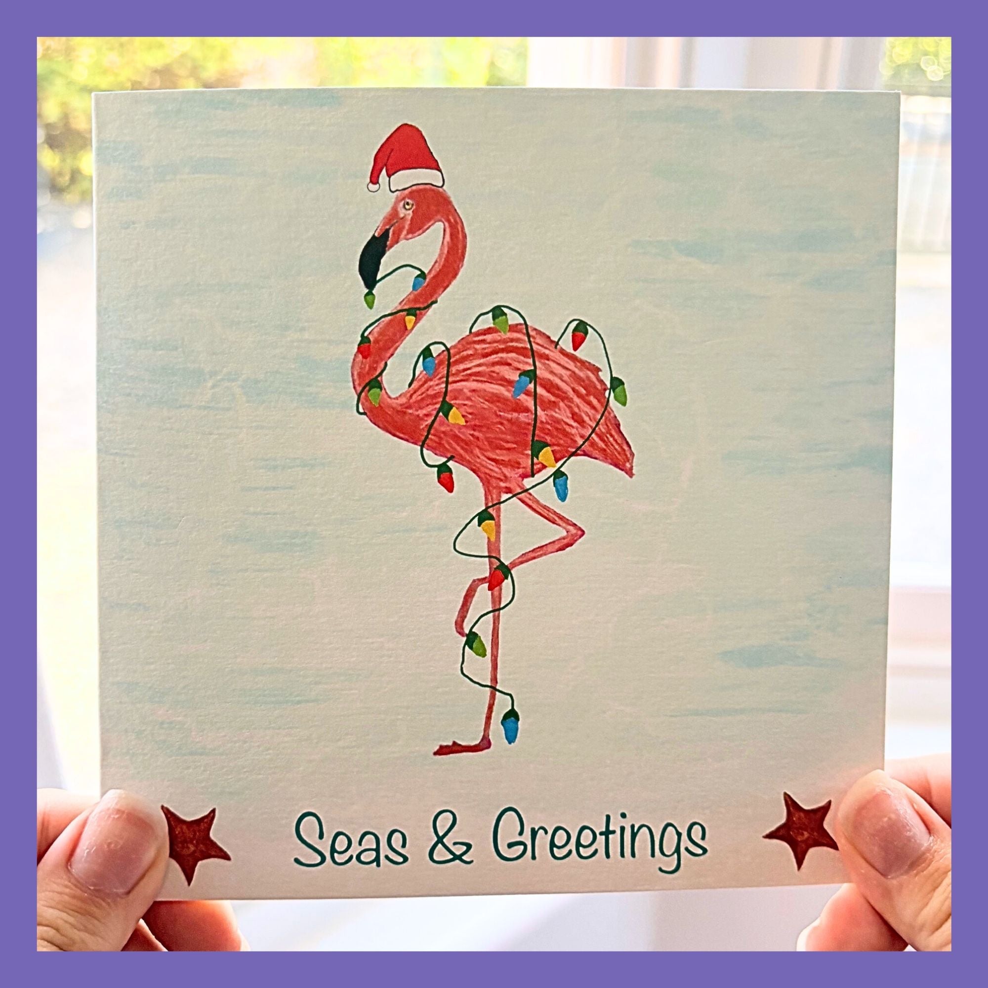 About the Design for Seas and Greetings Festive Flamingo Christmas Card