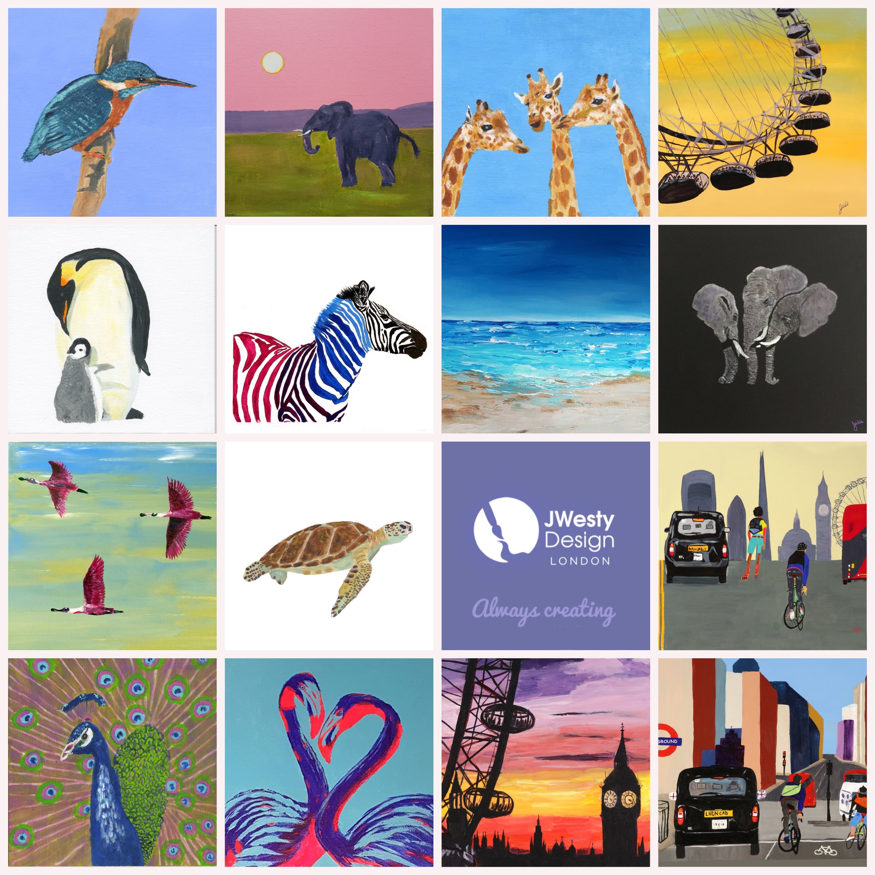 Each design is printed professionally in the UK from an original acrylic painting by UK artist Julie Westmore. The card can also be placed in a 15cmx15cm frame and used as a fine art print creating lasting memories.