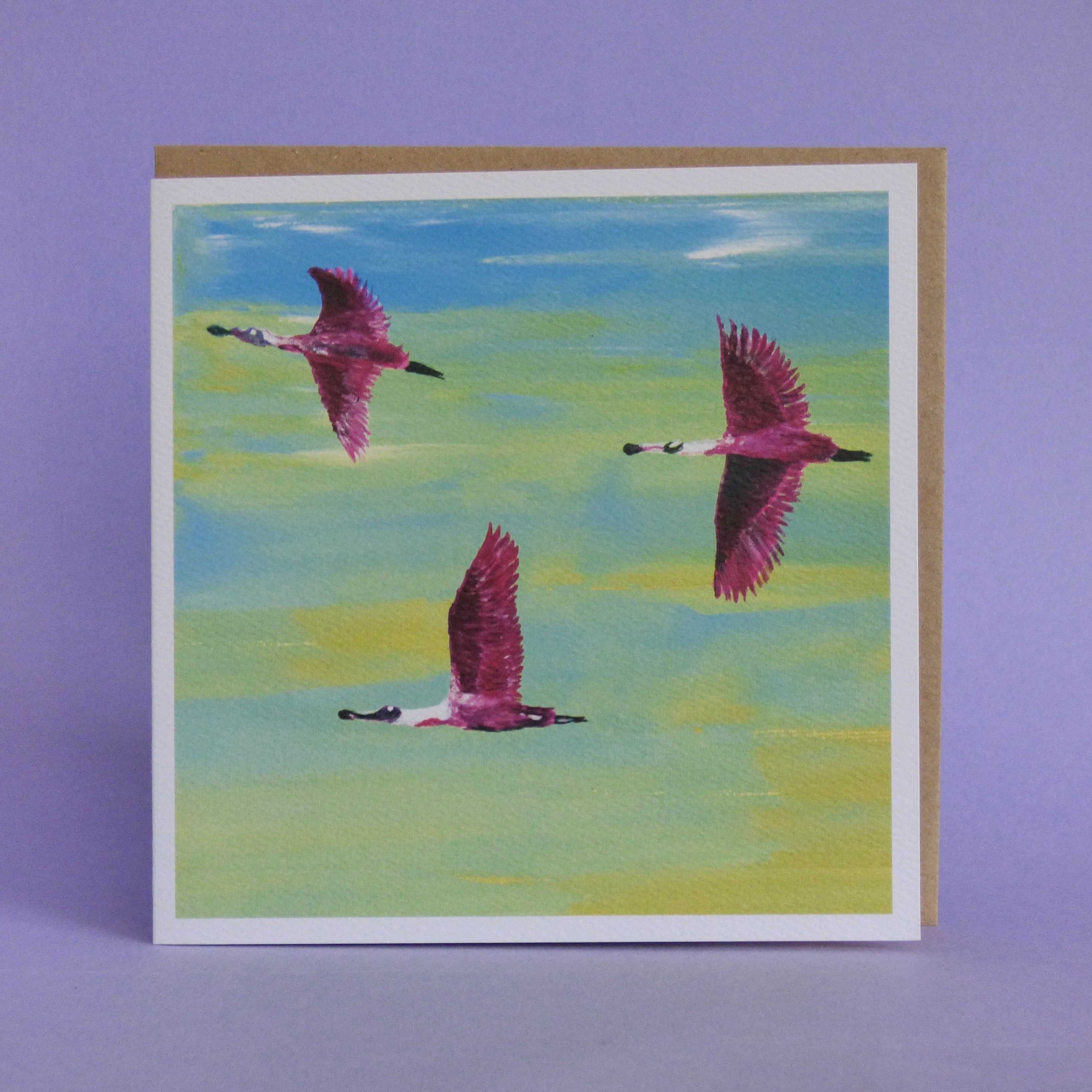 Flying Flamingos Greetings Card