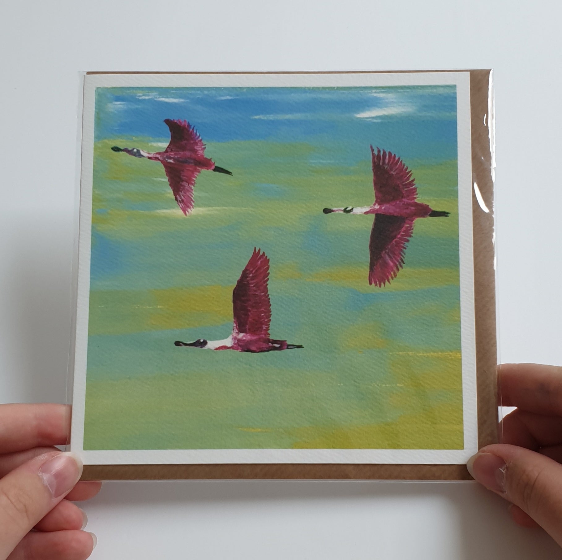 Created from one of my original flamingo paintings, this fine art greetings card captures the beauty of flamingos and their brightly coloured feathers. Printed in the UK on sustainable card, perfect for any occasion or even framing as a mini artwork for your home.